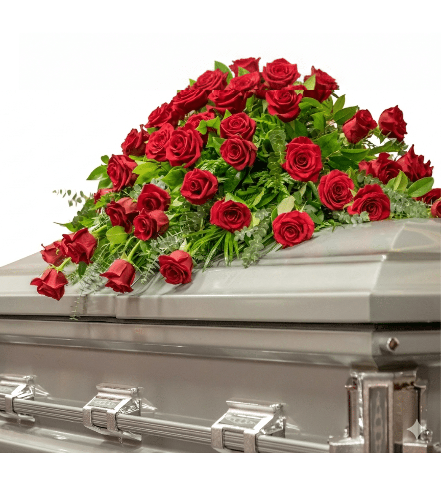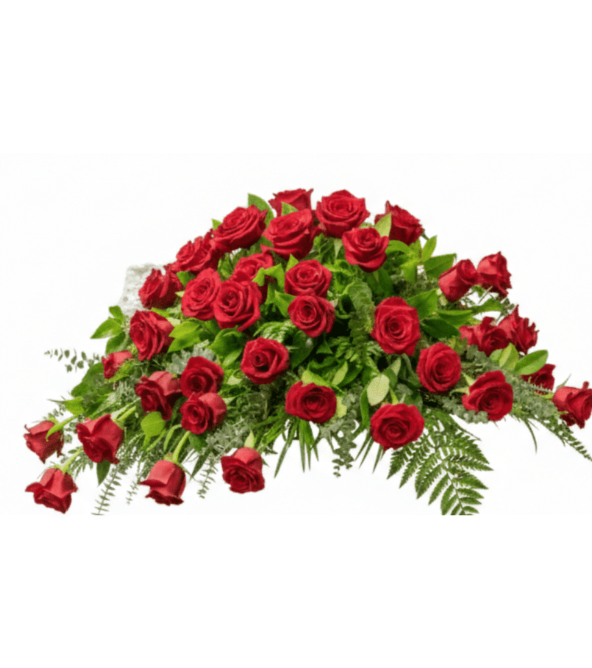 A breathtaking casket spray composed entirely of deep red roses, symbolizing enduring love and profound respect. This luxurious all-rose tribute makes a powerful and heartfelt statement of devotion.